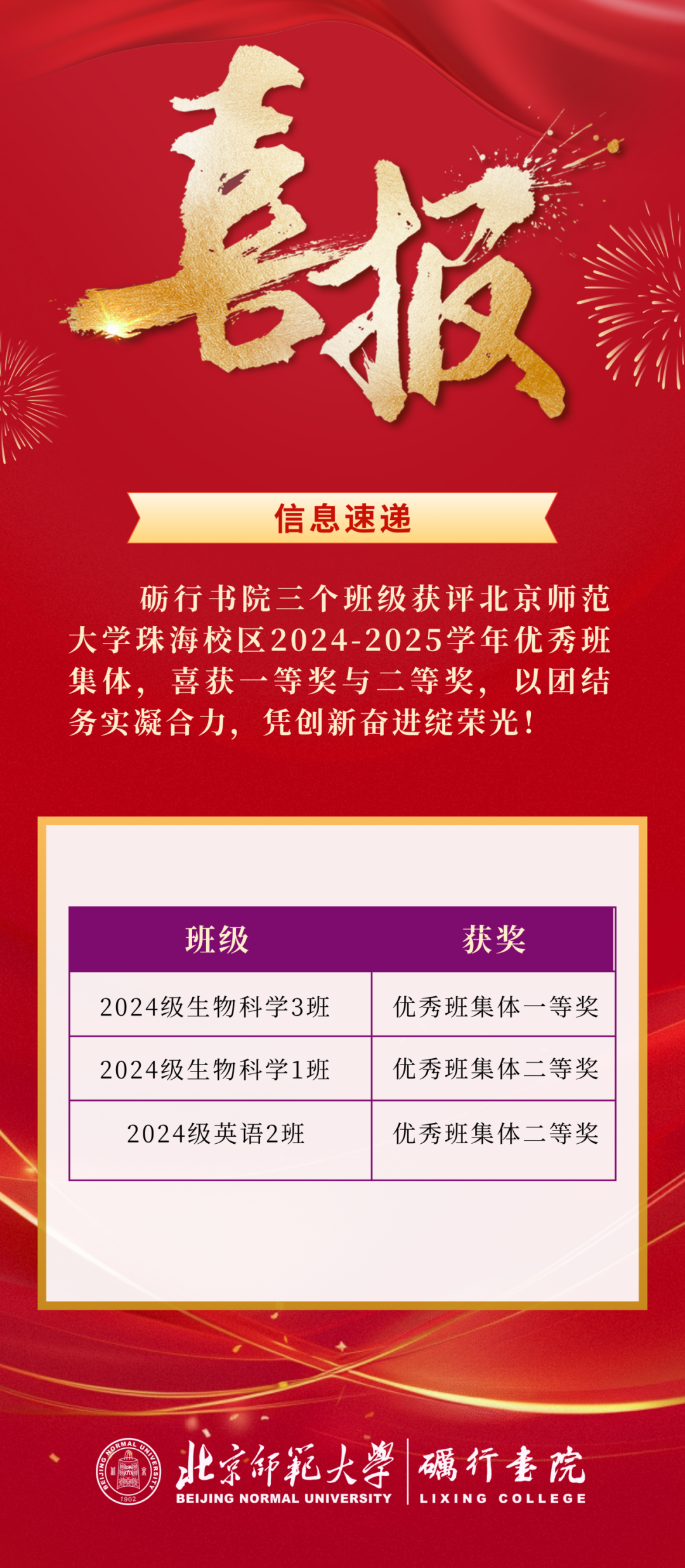 喜报丨砺行书院多个班级荣获北京师范大学珠海校区2024-2025学年优秀班集体奖项